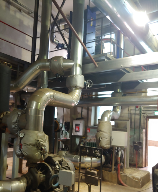 Все трубопроводы, имеющие температуру стенки трубы ниже +12°С, были теплоизолированы. При проведении теплоизоляционных работ поверхность стальных трубопроводов очищалась, после чего на эту поверхность наносилось антикоррозионное покрытие. В качестве теплоизоляционного материала для изоляции труб установленного оборудования и арматуры использовался вспененный синтетический каучук с закрыто-пористой структурой, который в настоящее время является эффективным теплоизоляционным материалом с высокими теплофизическими и эксплуатационными характеристиками. Теплоизоляция крепилась к трубам клеем, при этом поперечные и продольные швы между приклеенными листами изоляции были заклеены самоклеющейся лентой.