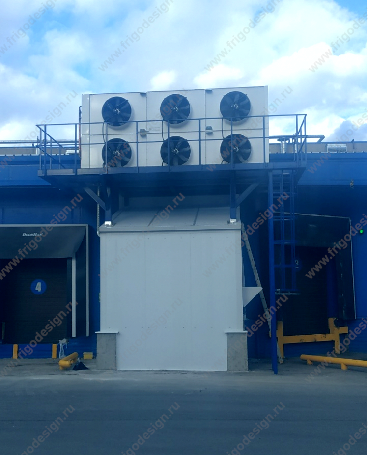 Холодильные агрегаты выполнены в моноблочном исполнении с конденсатором воздушного охлаждения. Холодильные агрегаты установлены на крыше помещения склада и снабжены дополнительной защитой от холодного пуска.