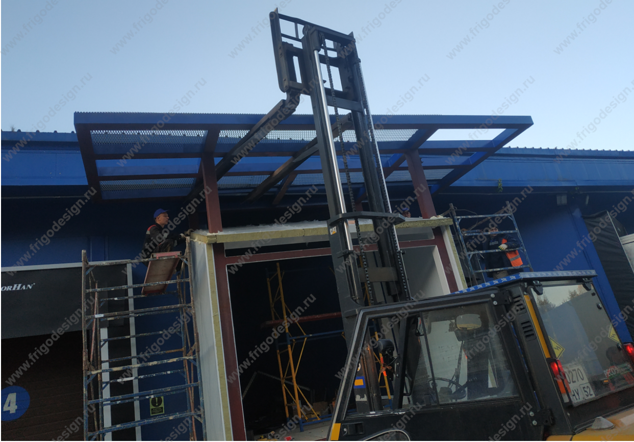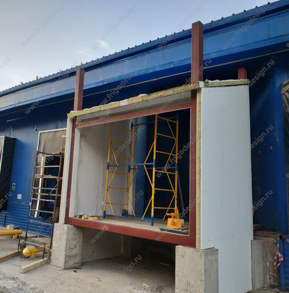 Строительство низкотемпературной камеры (минус 55ºС) с системой тамбуров: тамбур минус 20ºС и два тамбура +4ºС с осушкой воздуха и регулируемой влажностью. В камере минус 55ºС установлена автоматическая откатная дверь, а в тамбурах - автоматические скоростные ворота. Для освещения использованы энергосберегающие светодиодные светильники. Для аварийного освещения и сигнализации предусмотрен бесперебойный источник питания.