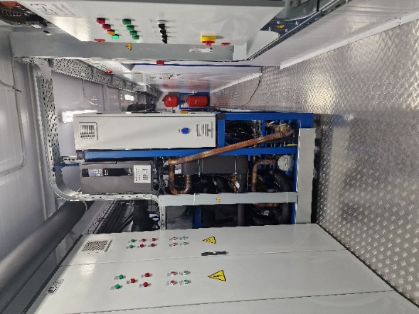 Система управления холодильной машиной включает щит управления агрегатом компрессорным и двумя насосными станциями, силовой электрический щит и щит управления бытовыми системами контейнера (приточно-вытяжная вентиляция, освещение, отопление).